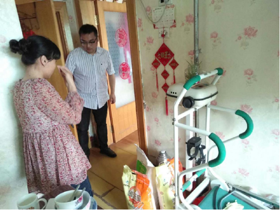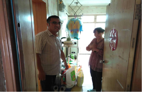 2018年6月13日,铁岭市农委到苗圃社区走访困难残疾人。为残疾人带去生活必须品:大米、面粉、食用油。