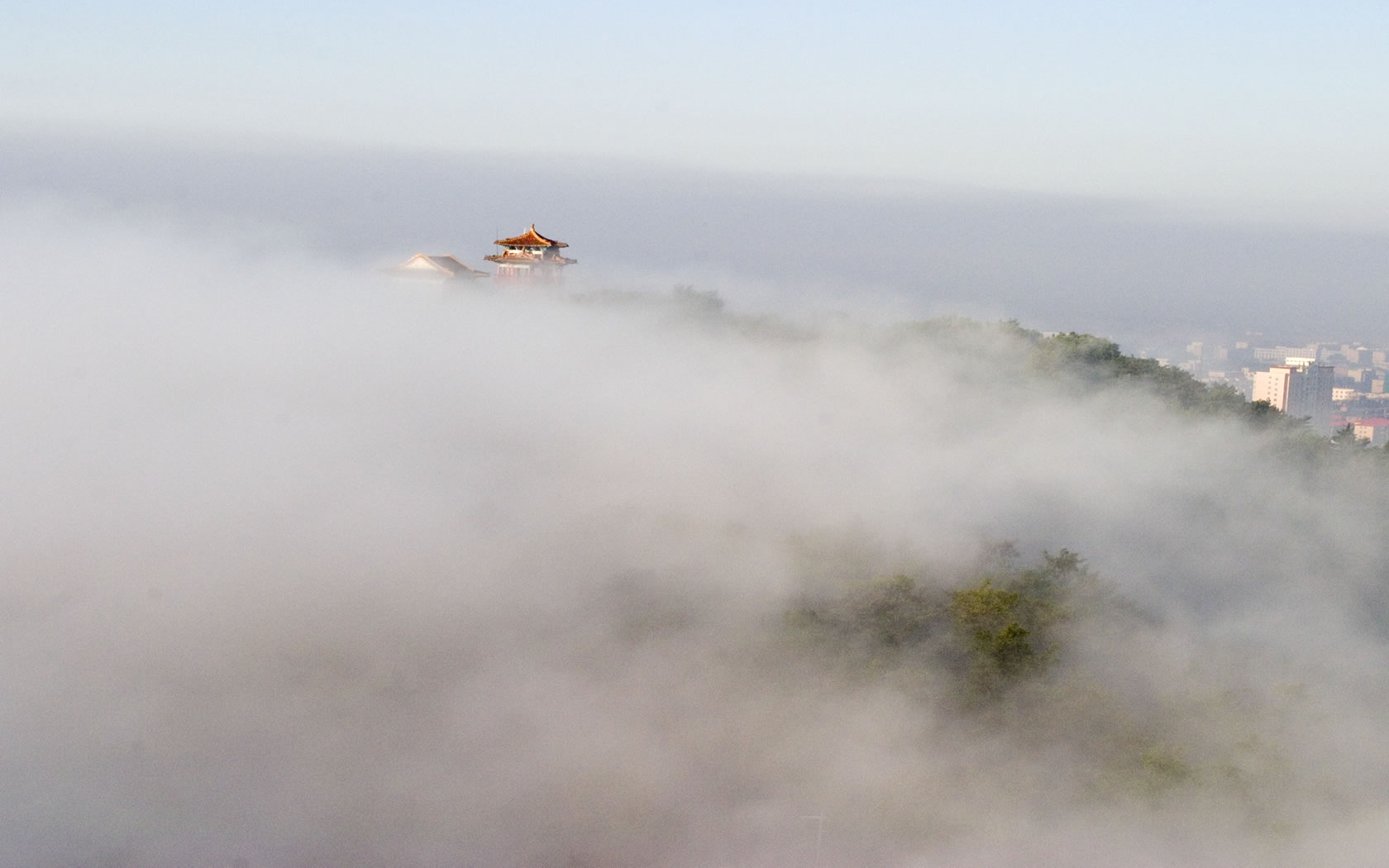 古老的慈清寺坐落在龙首山北峰之巅,原名秀峰寺、水潮寺,又称三清观,1988年被列为辽宁省文物保护单位。寺院为一座古朴的四合院落式建筑,有正殿、东西配殿、藏经阁、醉翁楼。院落前还有半墙、宿云两座碑亭。正殿面阔三间,进深两间,檐下有廊,横枋有鲜艳的彩绘。殿内供释迦牟尼等三尊佛像,并立有八大金刚泥塑。醉翁楼原为山门,1921年重建时改为木结构硬山式二层小楼,一楼为进出寺院的通道,二楼原为文人墨客品茗赋诗之处,现改为贵客休息室,藏有多幅名人题咏龙首山的书画。